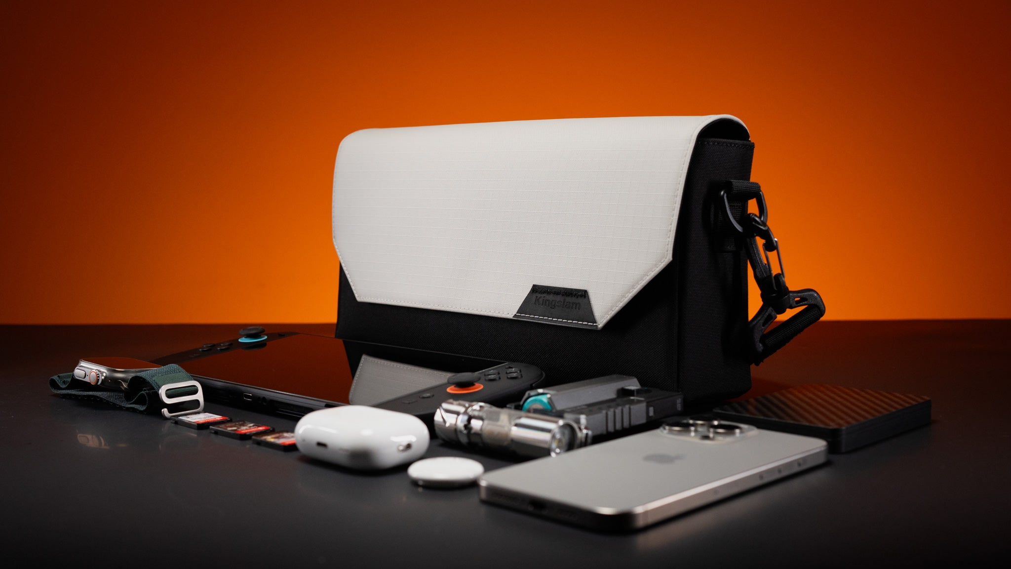 Your console, your cards, your AirPods — all in one silent move.